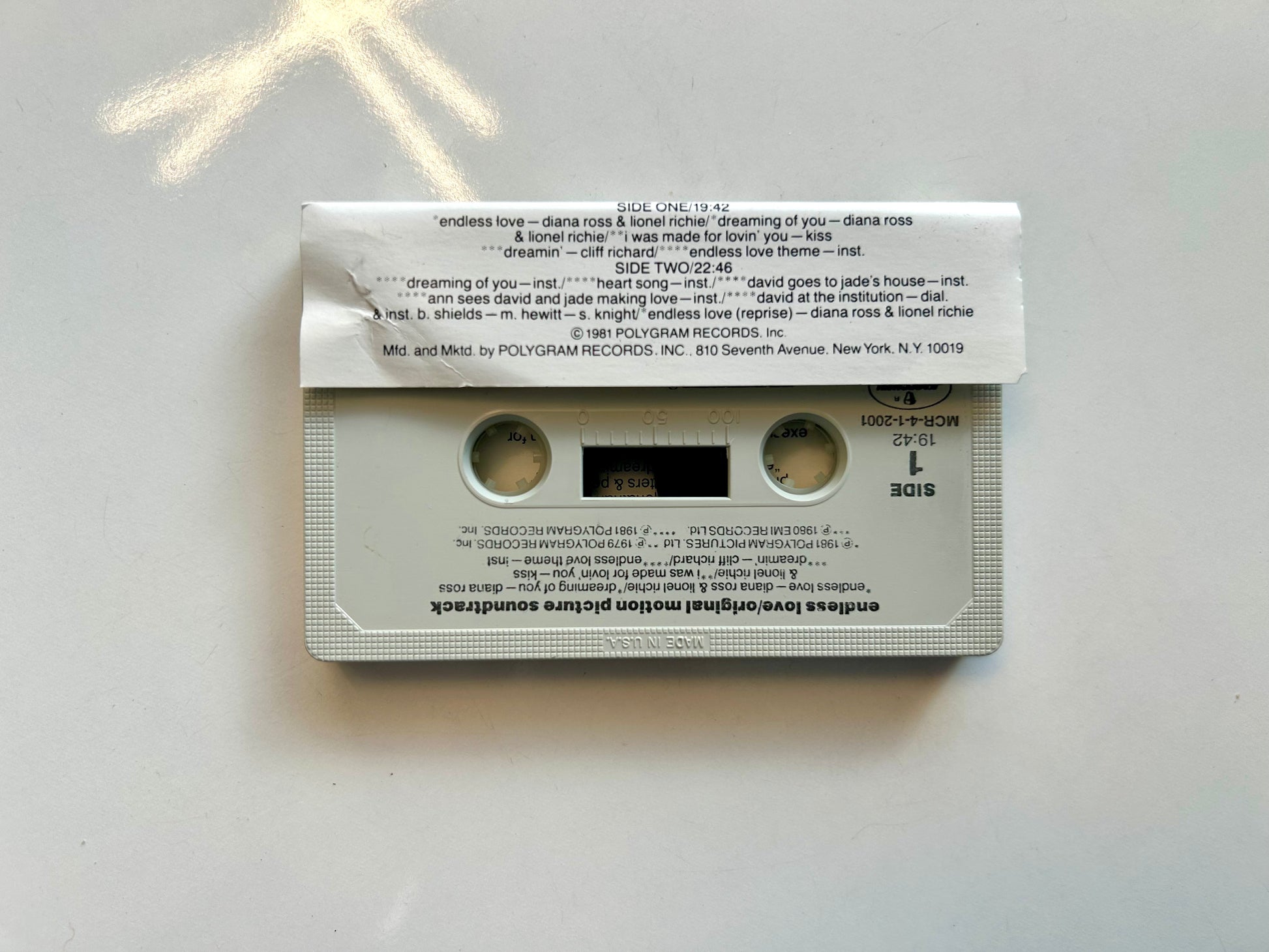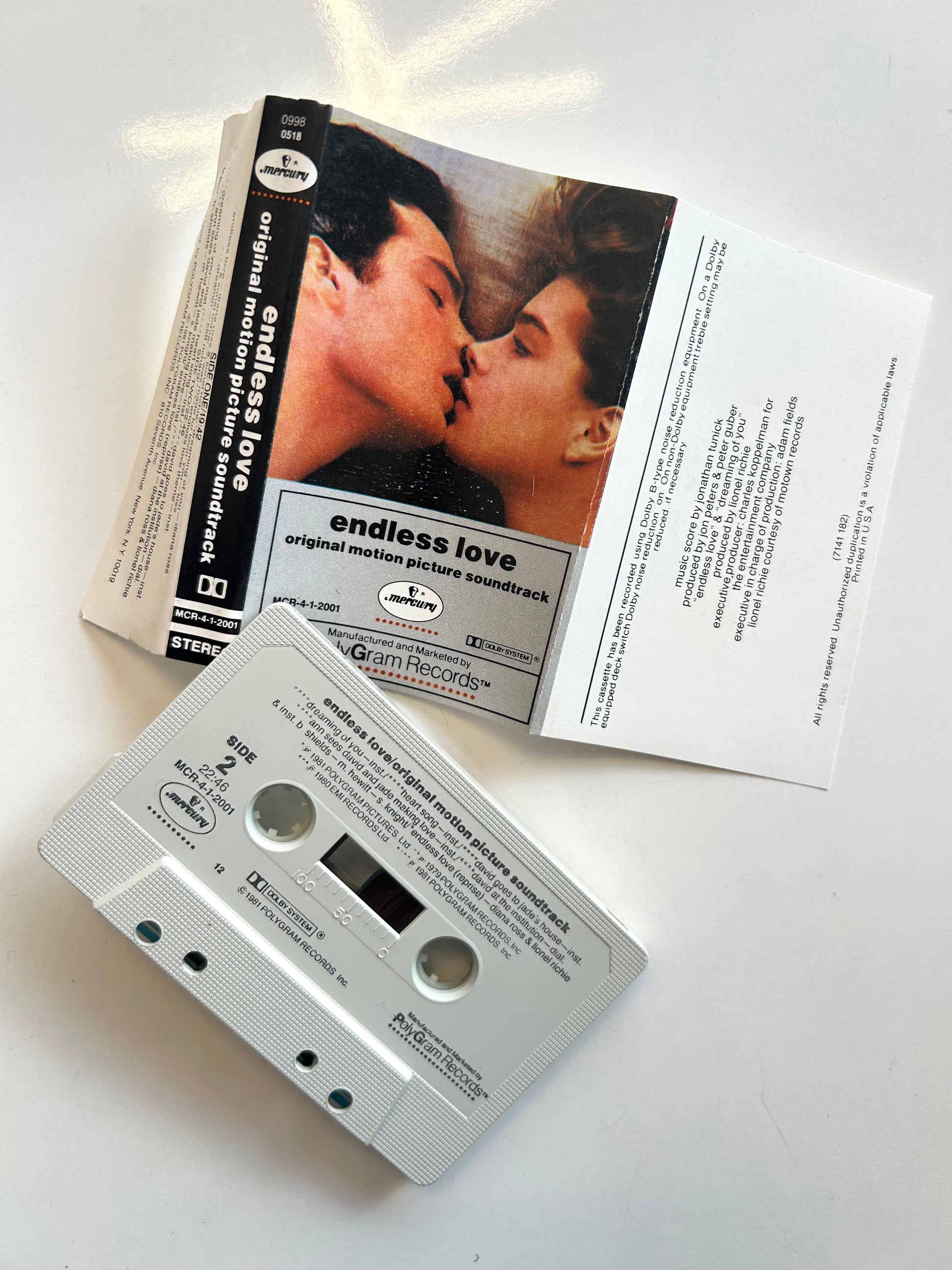 Endless Love movie soundtrack cassette tape. MCR-4-1-2001. 1981
