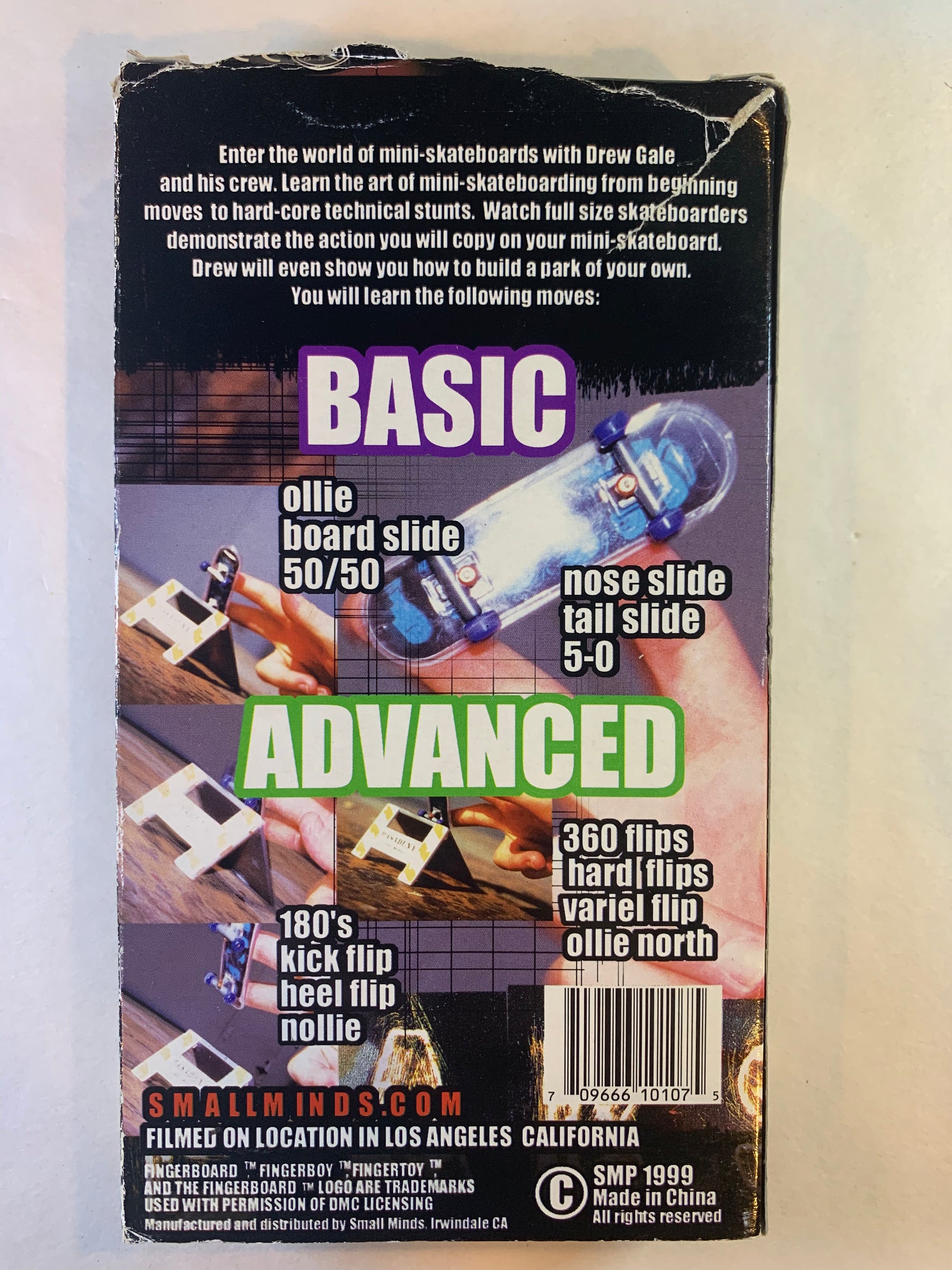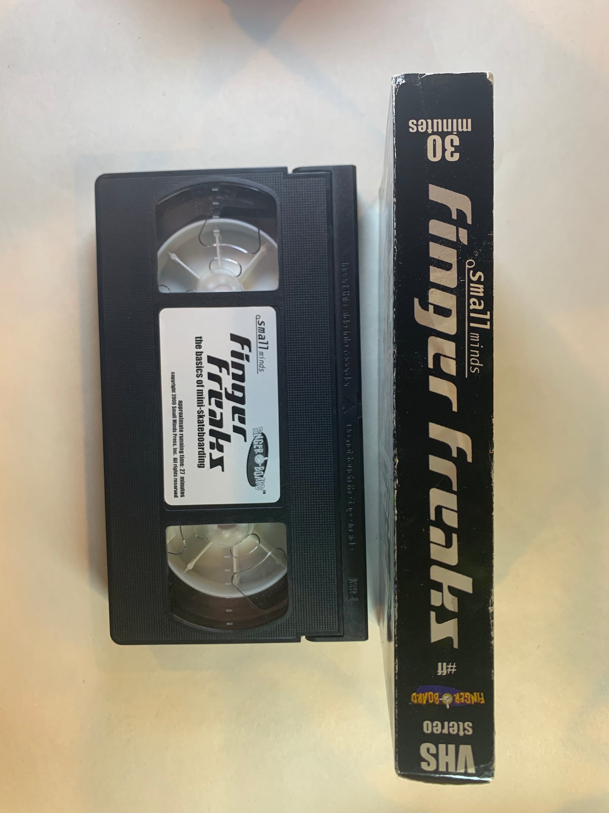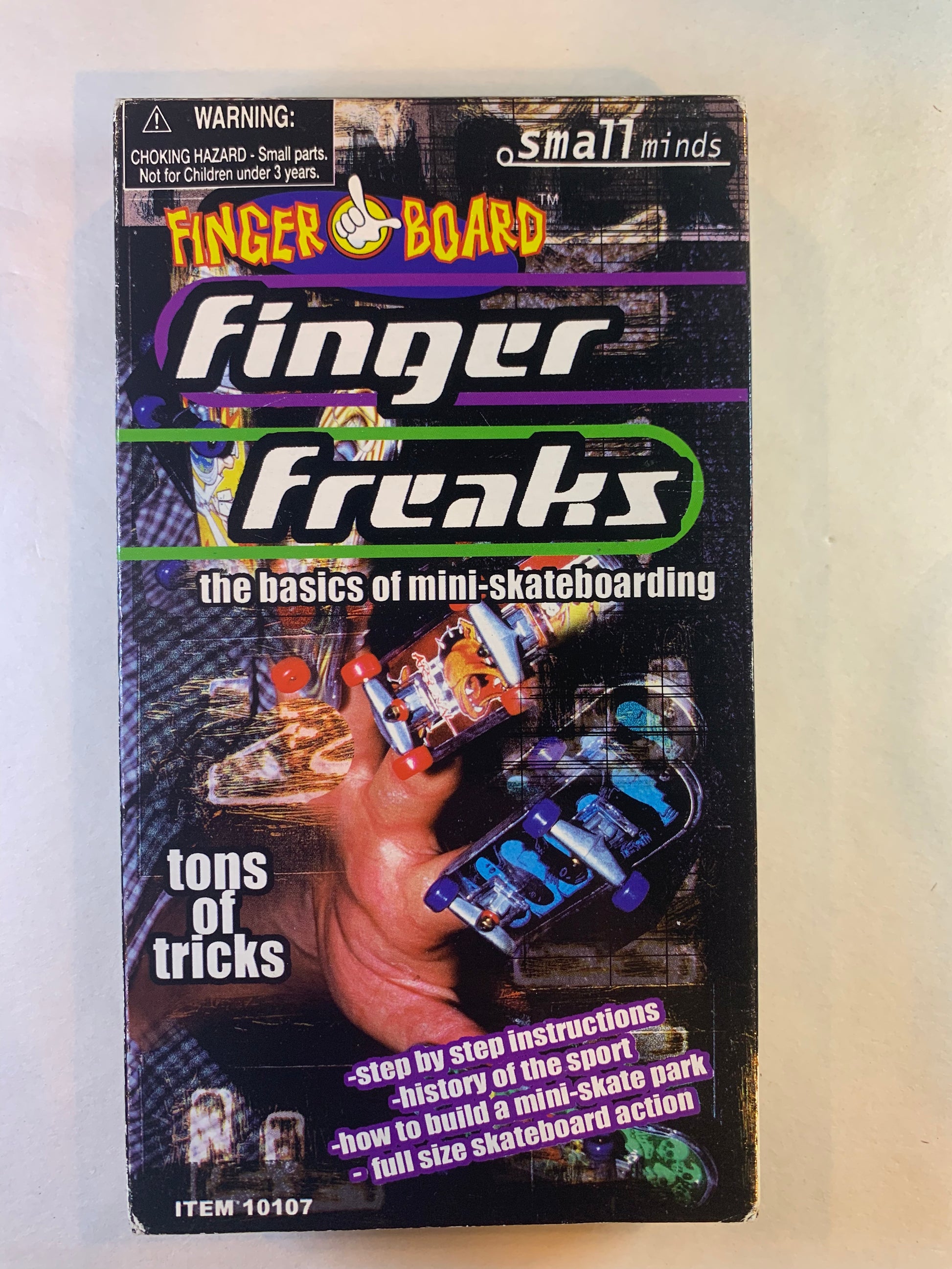 Finger Freaks the basics of mini-skateboarding. This VHS video teaches you how to master the mini-skateboard. You'll be kickflipping on your kitchen island in no time. This video is actually very entertaining. I'm pretty good with a Tech Deck but these guys are awesome. Slow motion footage of these guys doing complex tricks. 1999. Picture and sound quality are very good. 27 minutes