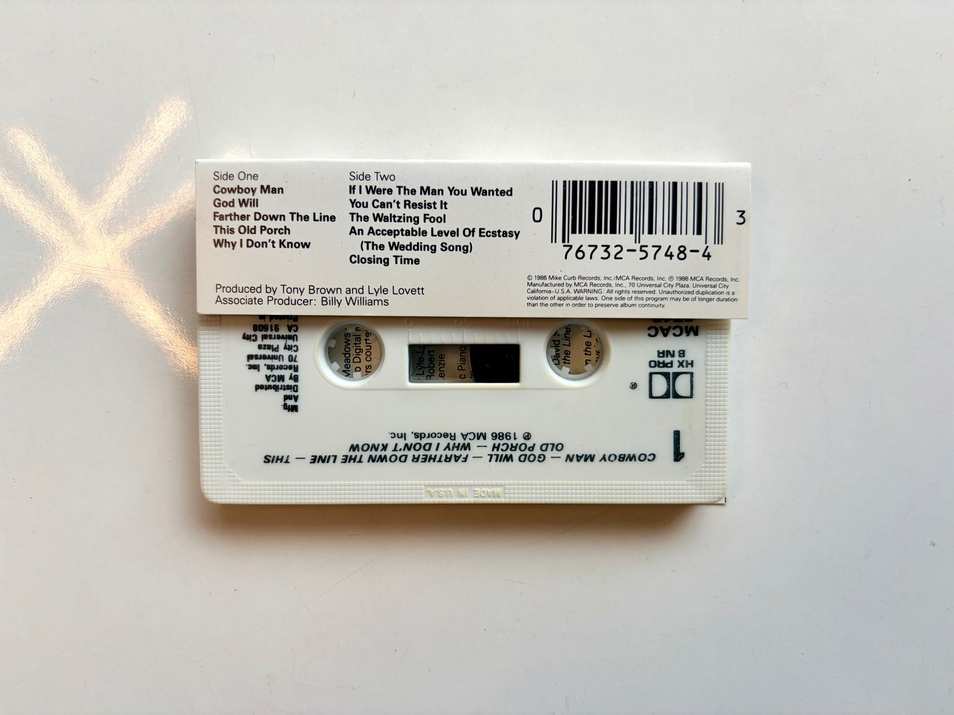 Lyle Lovett self-titled cassette tape. MCAC-5748. 1986