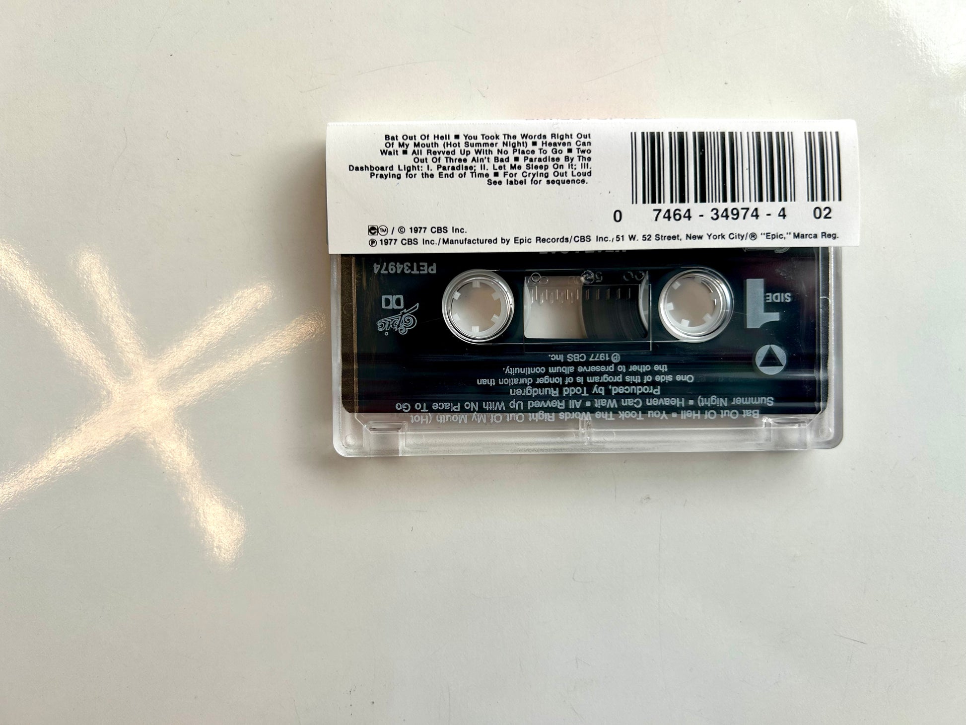 Meat Loaf Bat out of Hell cassette tape. PET 34974. 1977