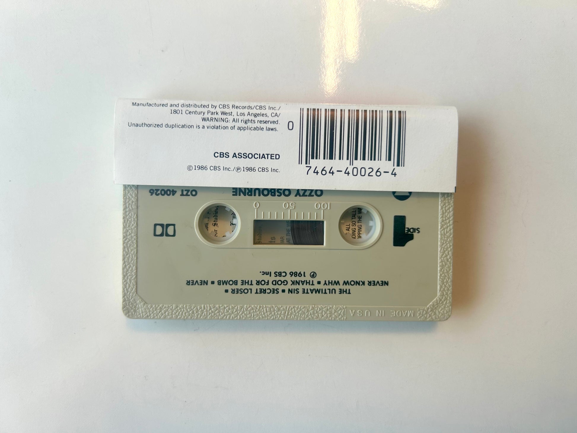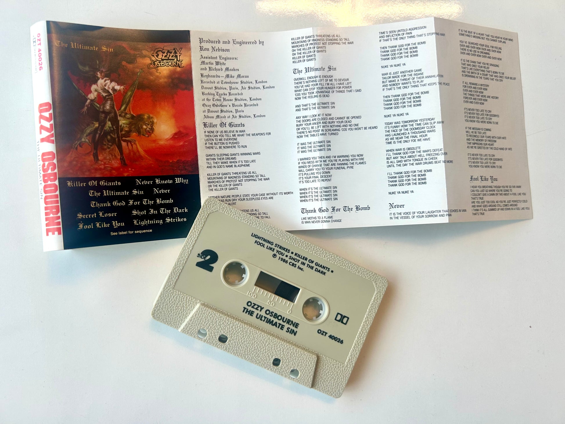 Ozzy Osbourne the ultimate sin cassette tape. OZT 40026. 1986