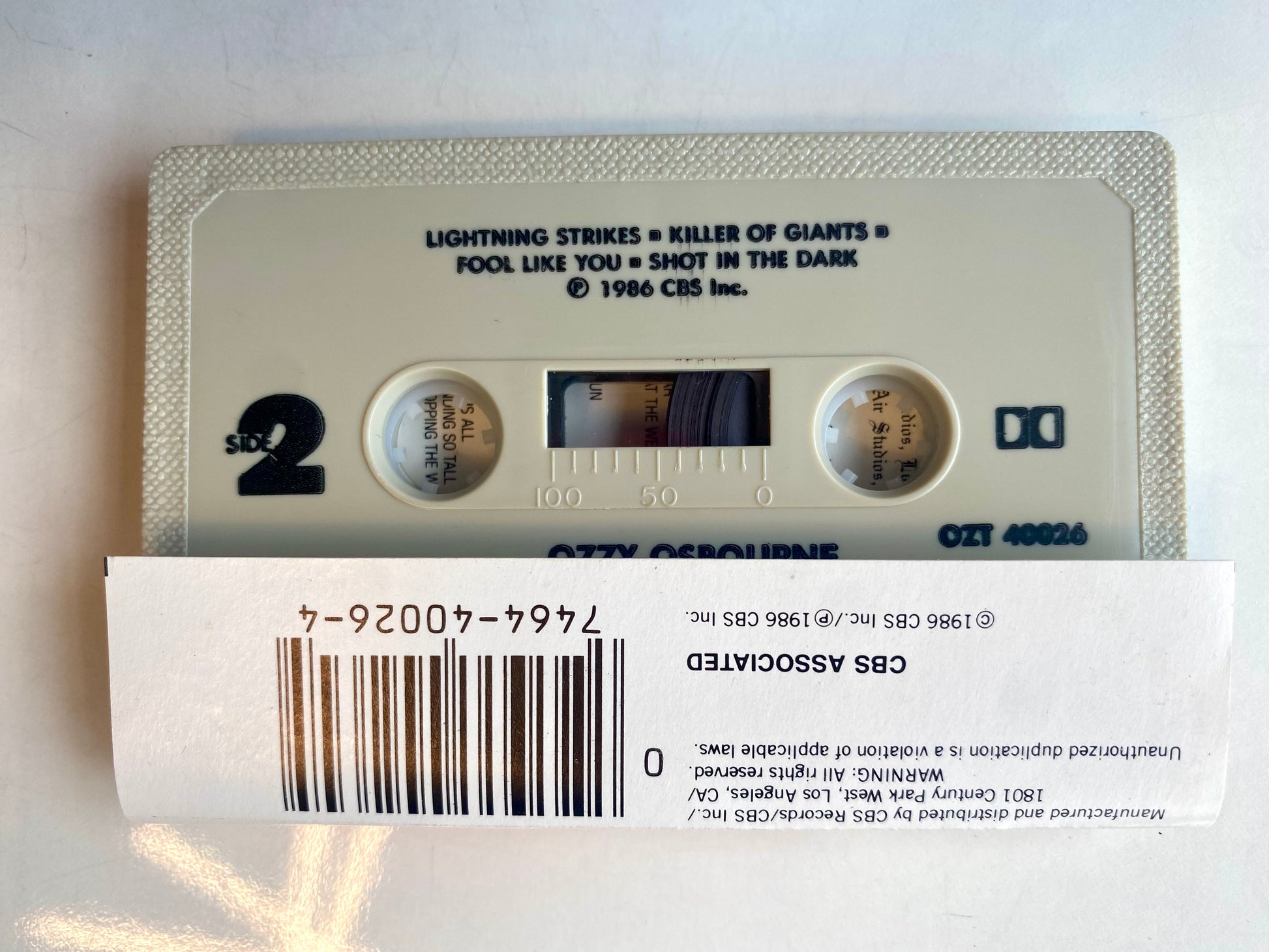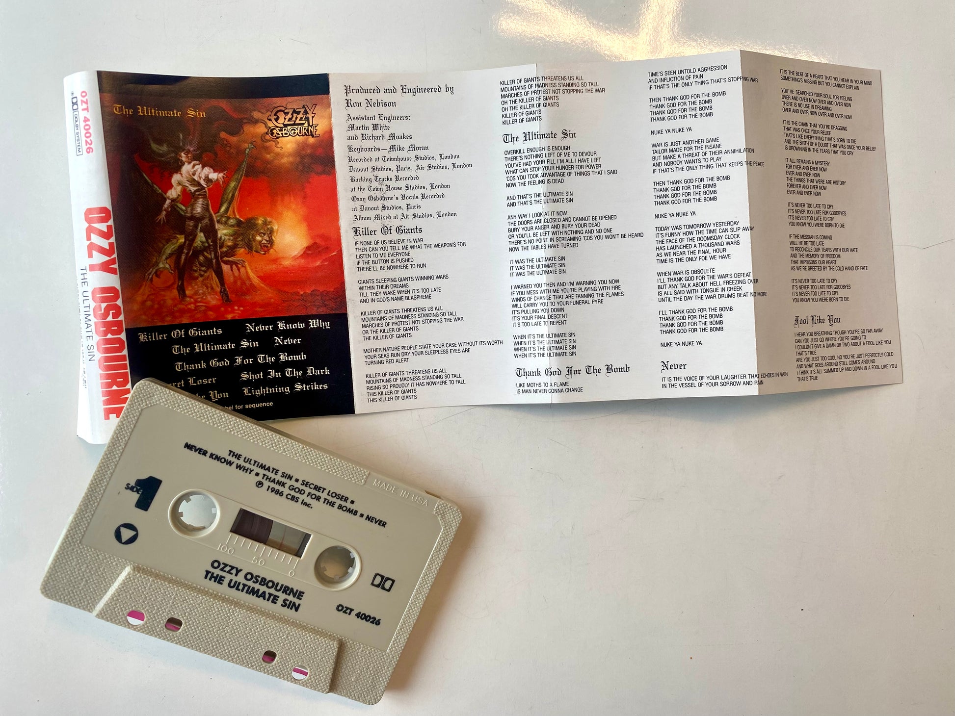 Ozzy Osbourne the ultimate sin cassette tape. OZT 40026. 1986